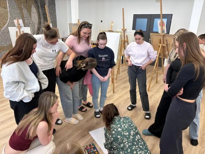 Dňa 9. 4. 2026 sme sa zúčastnili arteterapie, ktorá predstavuje formu psychoterapie využívajúcu tvorivé umelecké aktivity na podporu duševného zdravia. Počas vyučovacích hodín sme vytvárali vlastné obrazy a zamýšľali sa nad tvarmi, farbami a celkovým vyznením našich diel. V závere sme spolu s arteterapeutkami Reginou a Katkou z ARTECENTRA analyzovali jednotlivé práce, snažili sa vystihnúť, aké pocity vyvolávajú, a čo jednotlivé obrazy vyjadrujú. Predstavili nám jedinečný zážitok arteterapie – stretnutie, ktoré vás zavedie do vašej vnútornej krajiny. Prostredníctvom výtvarného vyjadrenia sa ponoríme do priestoru, ktorý nosíme v sebe – nekonečnú krajinu svojej fantázie. Cez kresbu, farby a symboly sme objavovali, pomenovali a zaznamenávali svoju krajinu – nie hlavou, ale pocitmi. Nie je potrebné žiadne výtvarné vzdelanie, len ochota tvoriť. Arteterapia je liečebno-kreatívna metóda, ktorá spája umenie a psychológiu. Pomáha človeku lepšie porozumieť sebe samému cez tvorbu – bez tlaku na výkon. Umožňuje uvoľniť emócie, zvládať stres, budovať sebavedomie a obnoviť spojenie so sebou. Celá aktivita bola veľmi príjemná a obohacujúca, najmä v tomto náročnom a stresujúcom maturitnom období.